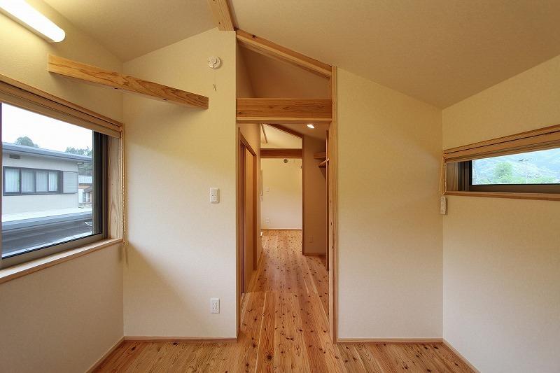 郊外のゆったりとした環境を敷地に選ぶ「ひらやパッシブ」。この住宅はじねんもくが提案する企画提案型プロトタイプです。1階に和室・洋室、二つの個室を設け、2階のロフト的なスペースは子供部屋、趣味コーナー、収納として多目的に使います。